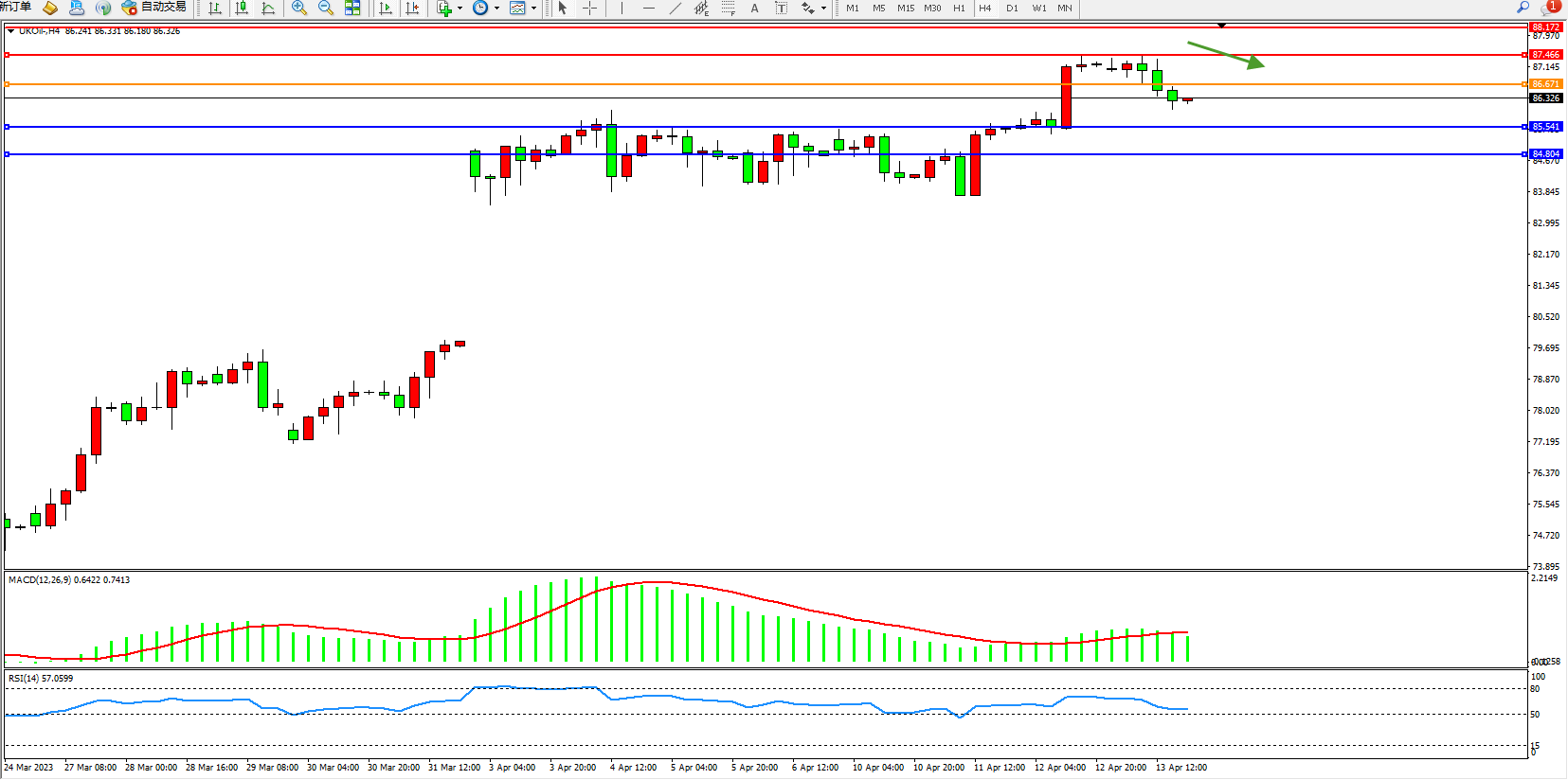 布油UKOil——4小时K线图显示: