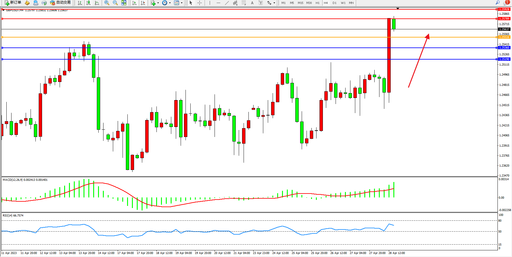交易策略:1.25516上方看涨,目标1.25789  1.25928