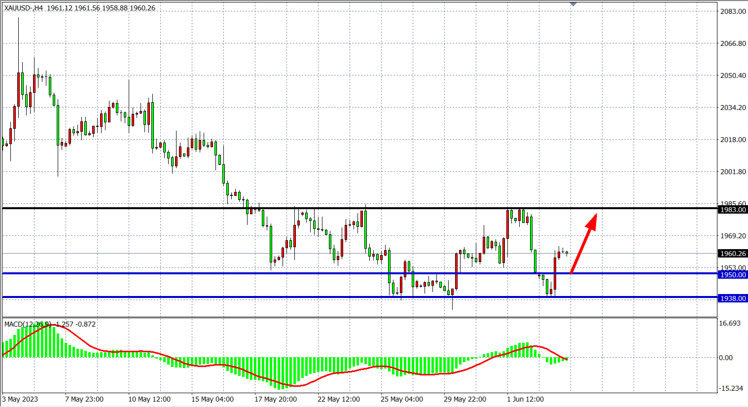 现货黄金XAUUSD 四小时图