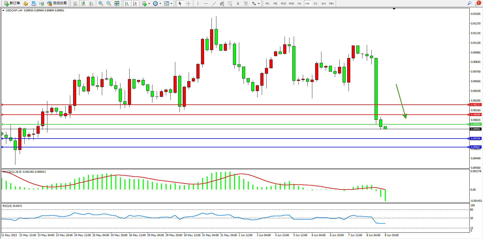 USDCHF:空头急挫 USDCHF  XAUUSD