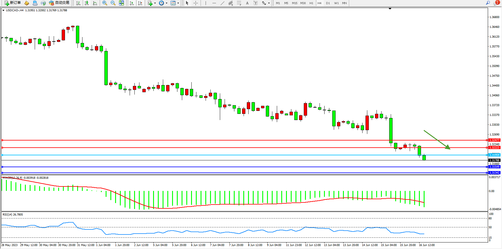 美元兑加元维持1.31788附近震荡,石油输出国组织及其盟国(OPEC+)5月宣布的最新减产以及沙特阿拉伯7月份进一步自愿减产将支撑油价。尽管如此,由于全球增长前景仍然容易受到激进加息活动的进一步冲击,市场难以驱离恐慌情绪。