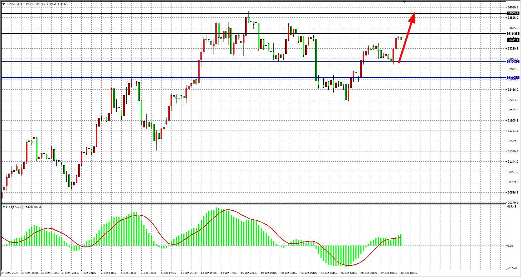 JPN225四小时图