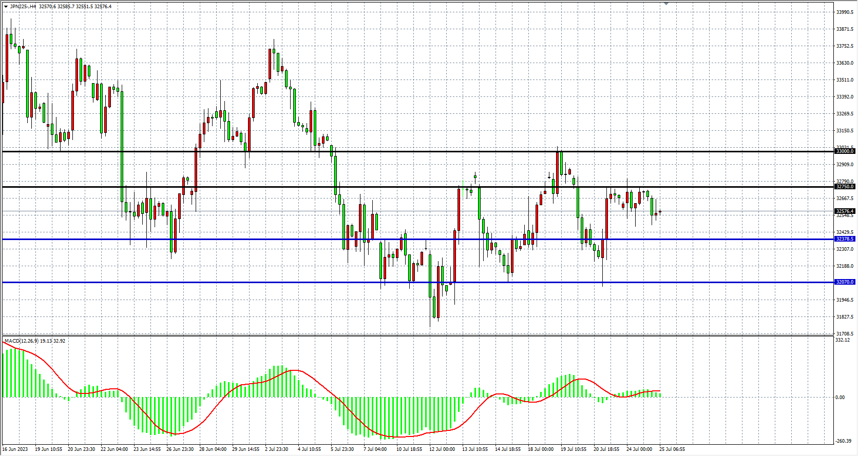 周二(7月25日)日经225指数收盘下跌43.00点,跌幅0.13%