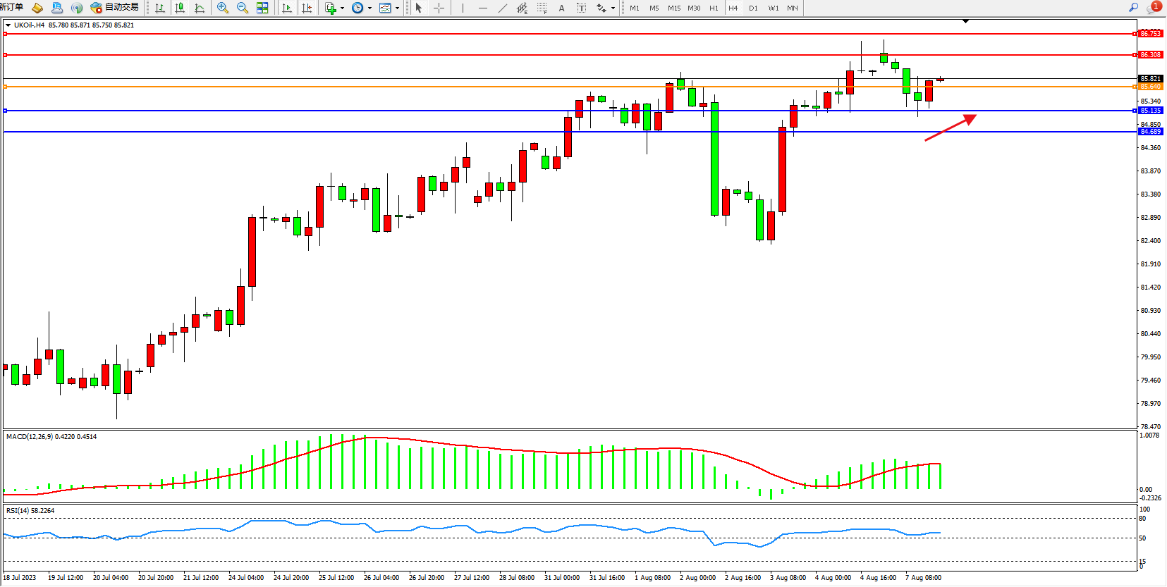 布油UKOil——4小时K线图显示: