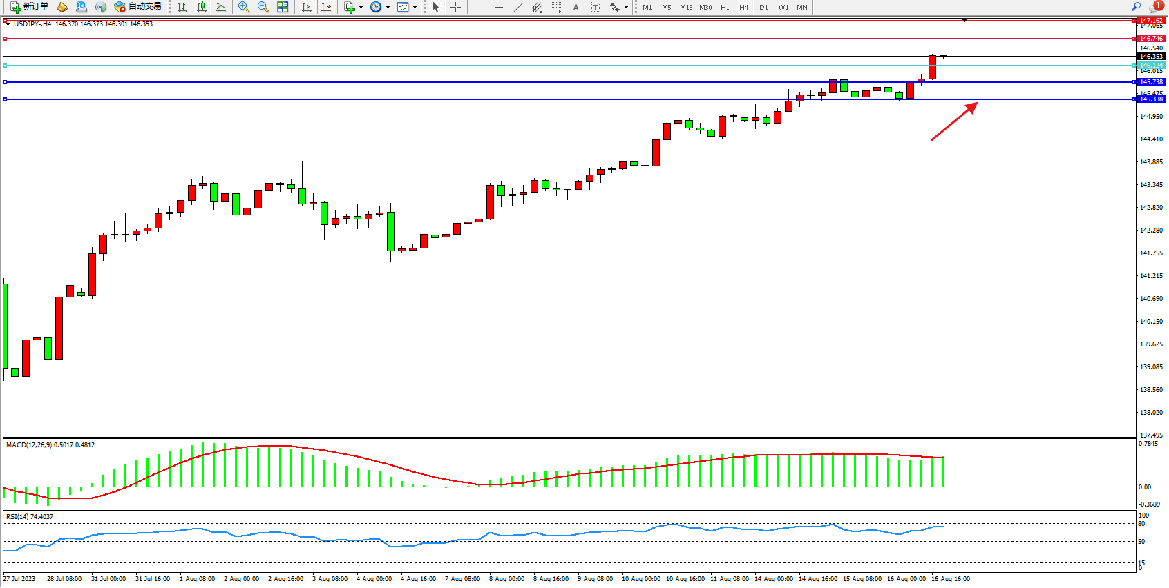 美元兑日圆维持146.353附近震荡,日本政策制定者不像去年那样大声反对捍卫走软的日元。当局在干预市场时并不以绝对汇率水平为目标。如果日本央行不出面干预,将极大可能刺激美元/日圆继续勇闯高峰。