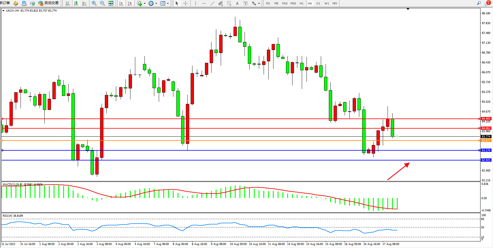 交易策略:83.627上方看涨,目标84.063 84.403