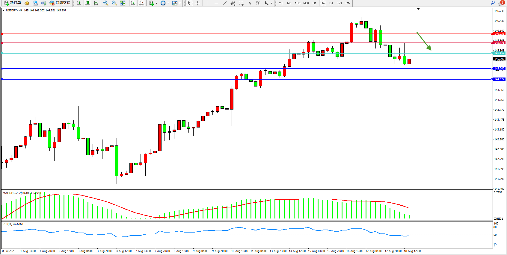 美元兑日圆维持145.297附近震荡,日本消费者通胀在7月放缓,这与日本央行认为价格增长已经见顶的观点相吻合,可能为其保持宽松政策立场的理由提供了支撑。