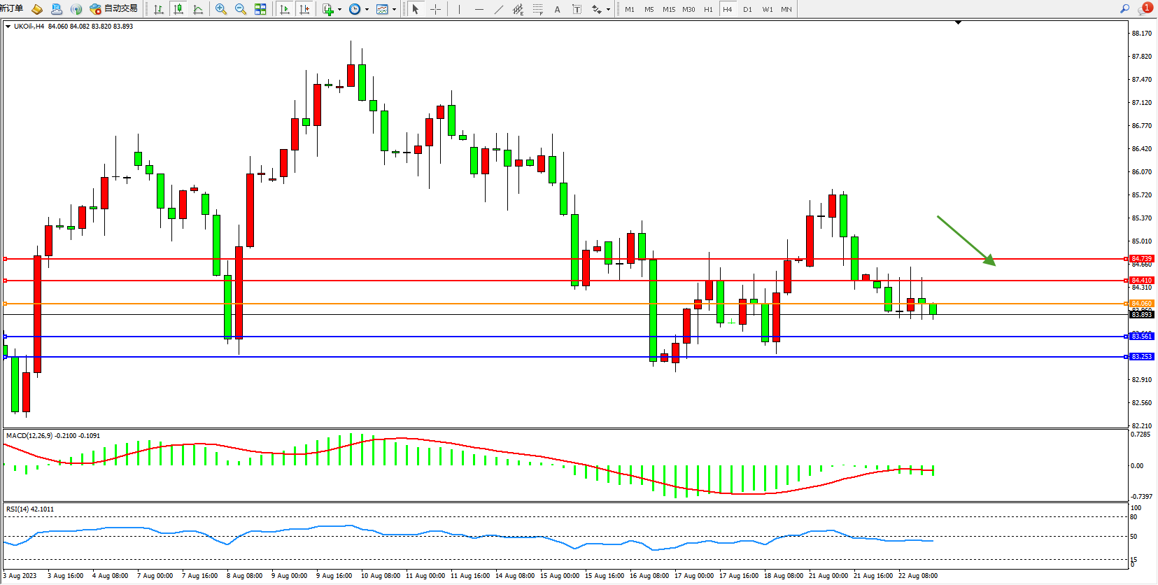 布油UKOil——4小时K线图显示: