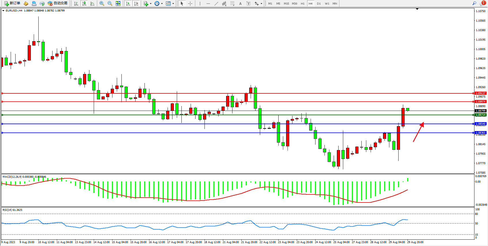备选策略:1.08714下方看跌,目标1.08540 1.08365