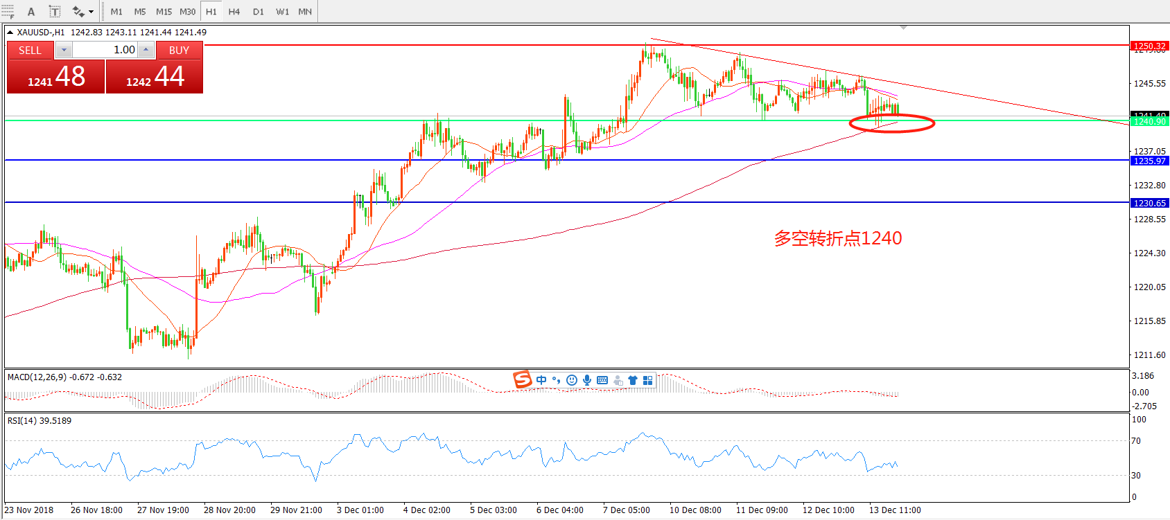 多空转折点:1240.00