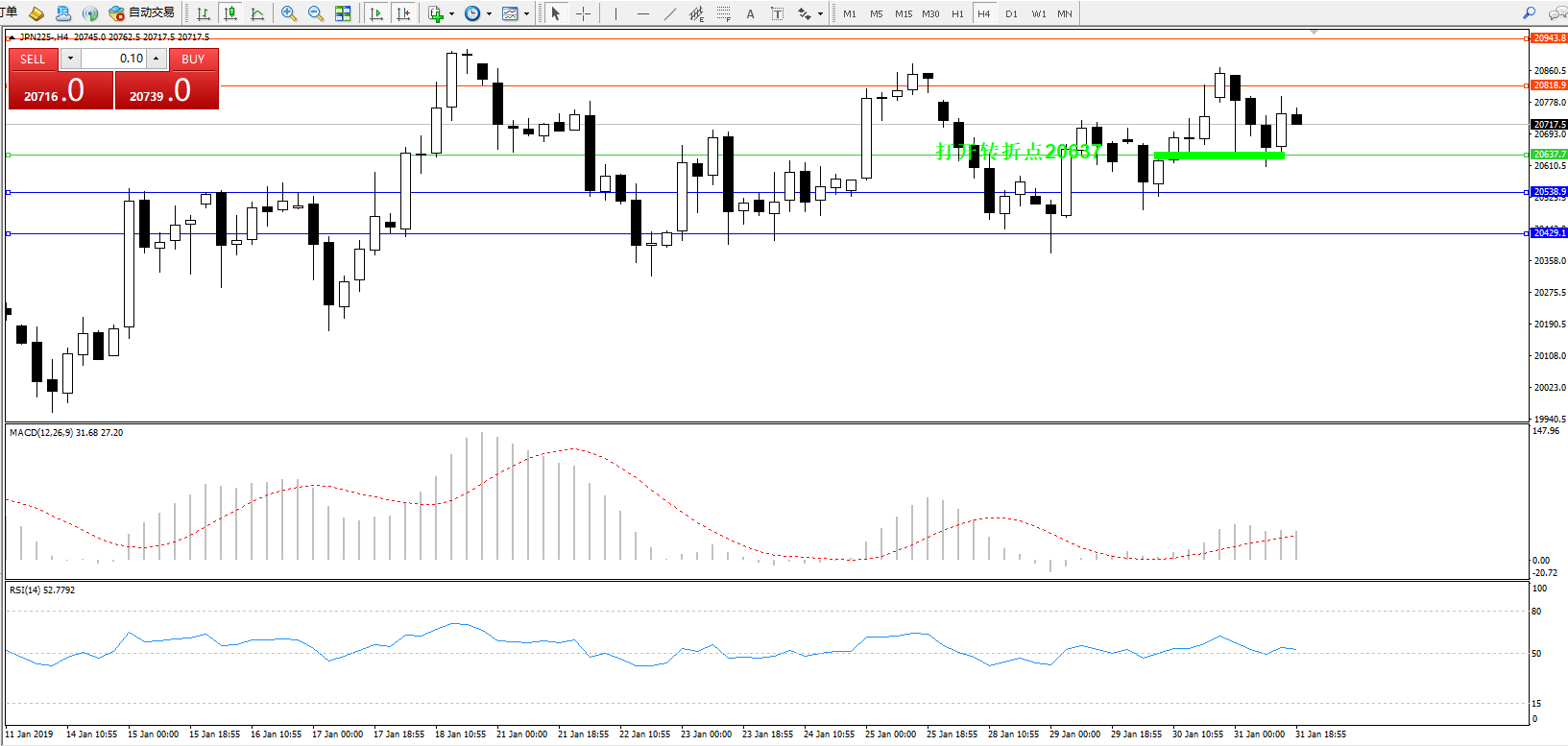 日经指数JPN225——4小时K线图: