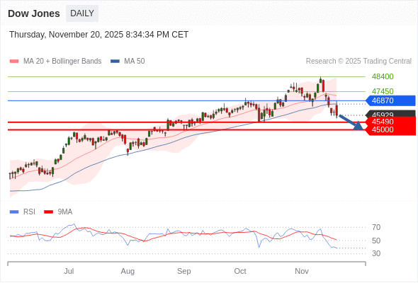 在 46870 之下,看跌,目标价位为 45490 ,然后为 45000 。