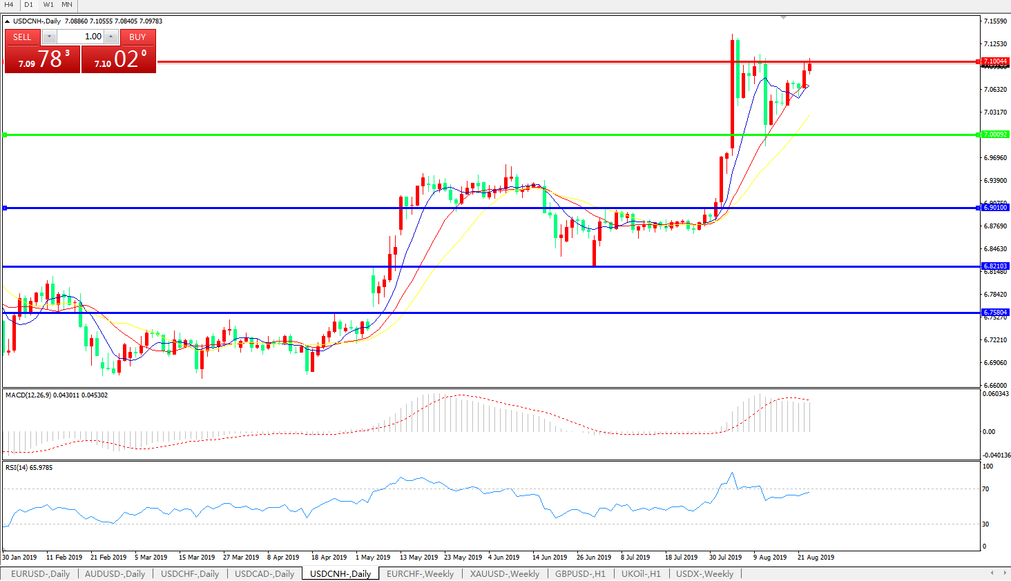 交易策略: 在7.0000之上,看涨,目标价位为7.1000,然后为7.2000。
