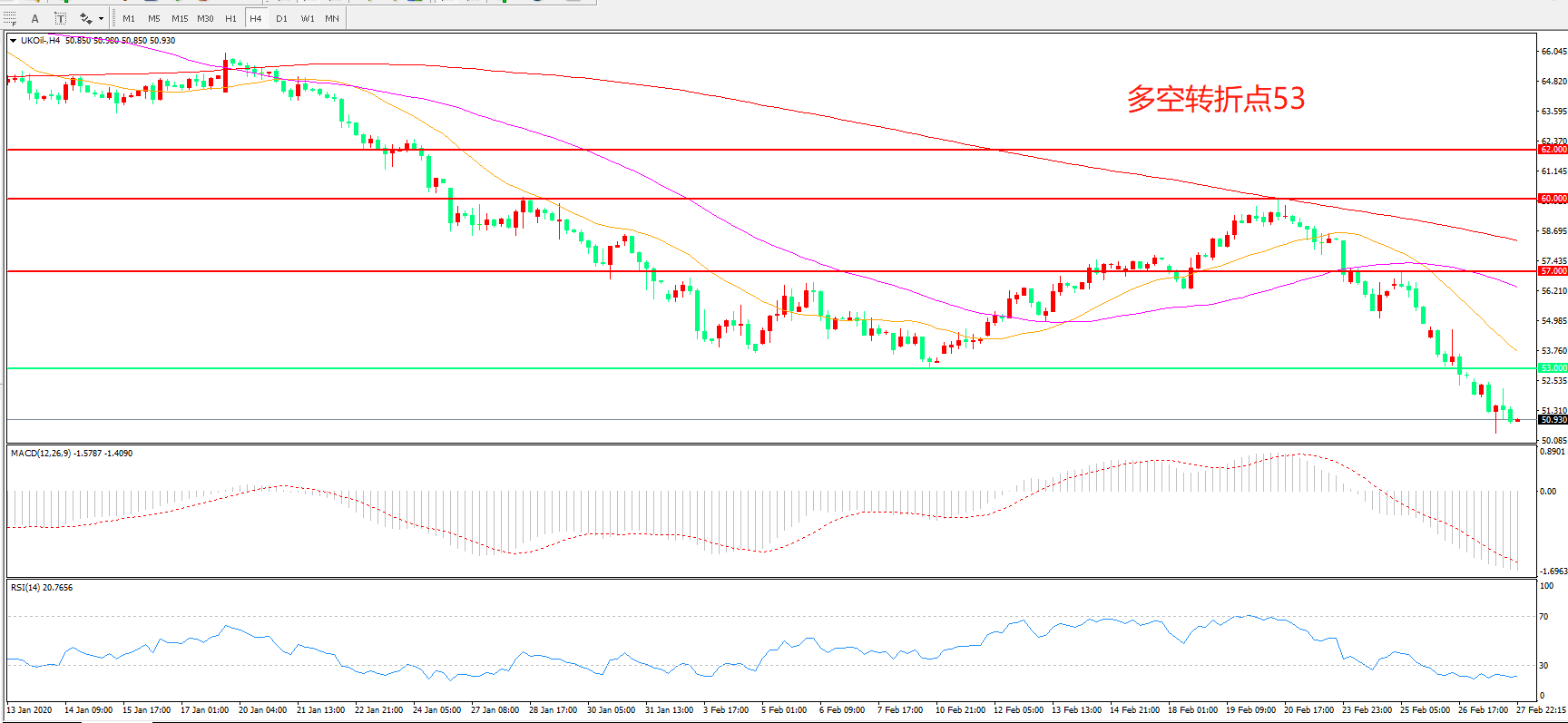 交易策略:在53.00之下看跌,目标50.00 46.00