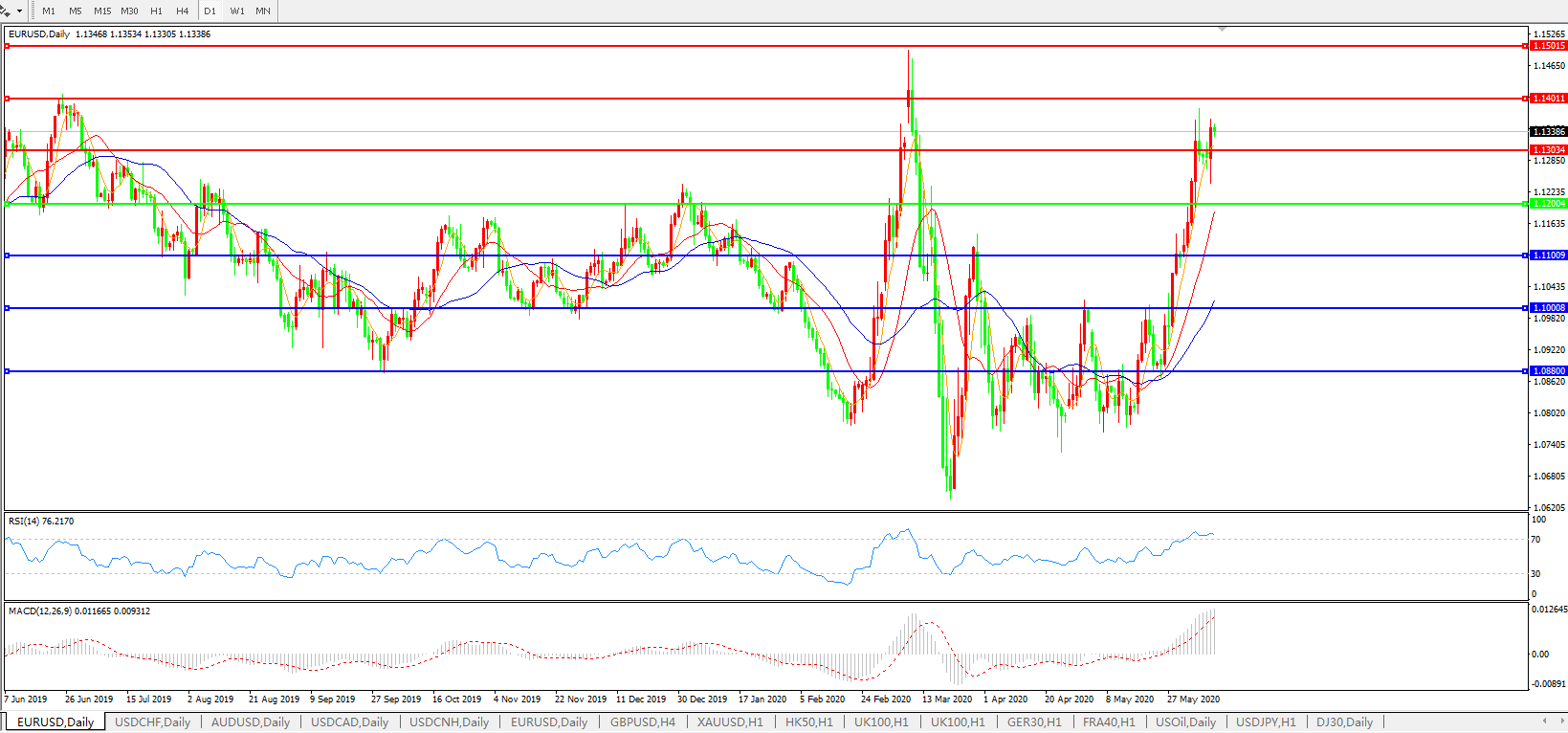 摩根士丹利研究部讨论了欧元兑美元的前景,维持逢低买入的观点,且将止损位设于1.1020水平。该行指出,我们维持看涨欧元,且继续建议逢低买入欧元兑美元,预计未来几个月这一货币对将会升向1.1550水平;我行认为欧盟复苏基金的提案是数年来加强欧元区融合以及提振欧元区经济中最强的计划。近期的欧元涨势很可能是因欧元兑日元和欧元兑瑞郎空头回补所导致,我行认为市场尚未开始显著买入欧元,而本月晚些时间召开的欧盟峰会很可能提供欧元这份催化剂。下周的欧盟经济财政理事会(ECOFIN)和欧元区集团会议将是欧元的关键日,因全球经济恢复而普遍走软的美元也扶助欧元兑美元更为走高。