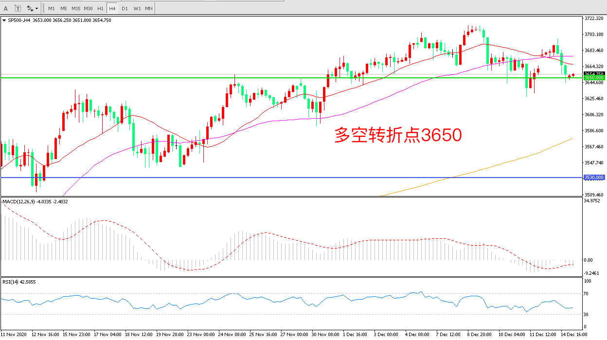 周一(12月14日),英国与欧盟延长脱欧贸易谈判,美国开始接种新冠疫苗,但投资者还在担心美国可能出台更多防疫限制措施,标普500高开低走,震荡下行,收报3653.50点。大型科技股中仅苹果和谷歌收跌,涨超3%的奈飞领涨,亚马逊涨超1%。