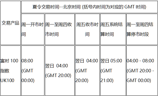 2022年3月28日(周一)起以下产品的交易将转为夏令时间