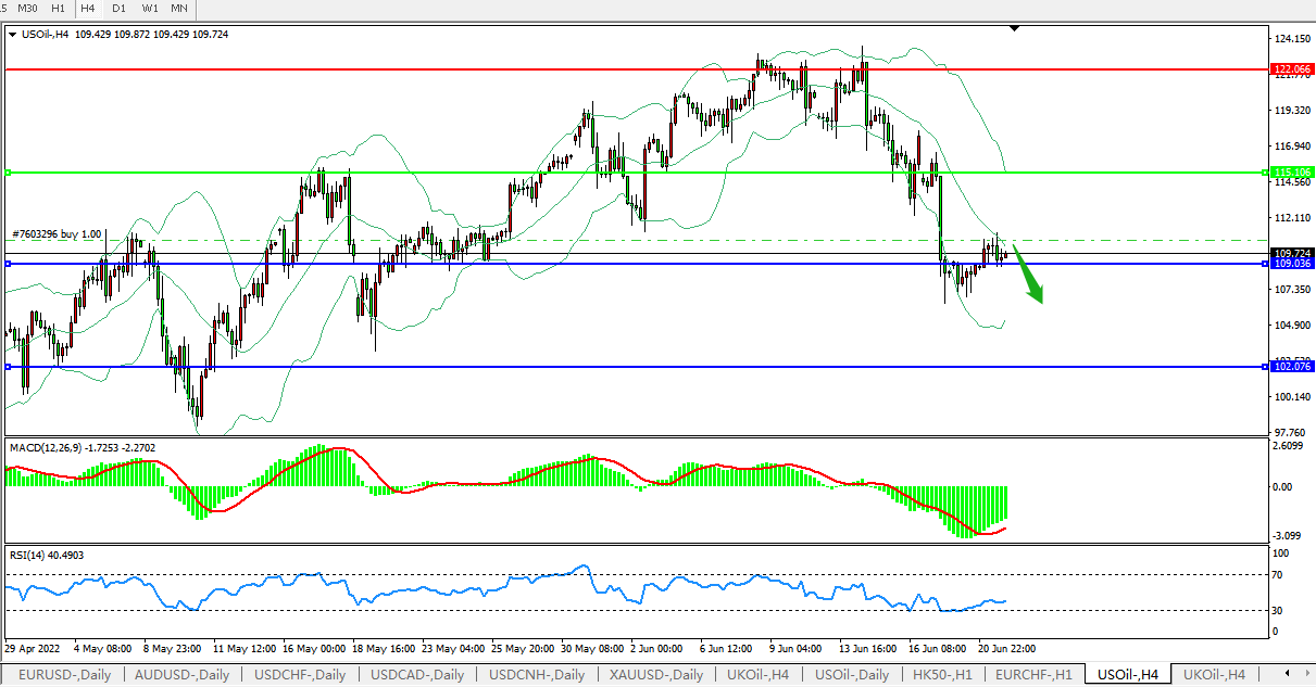 美国原油USOil 4小时图