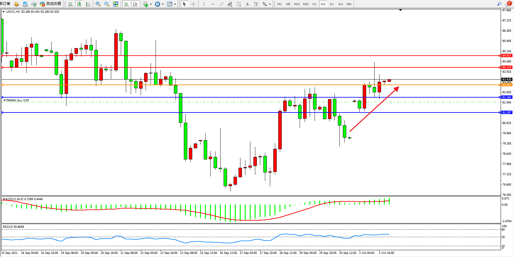 4小时图看:低位多头阶梯式震荡上扬,短期看涨情绪不断涌入,多头拉升走势持续,MACD指标处于0轴线上側徘徊,RSI指标处于50均衡线上側弱势整理;
