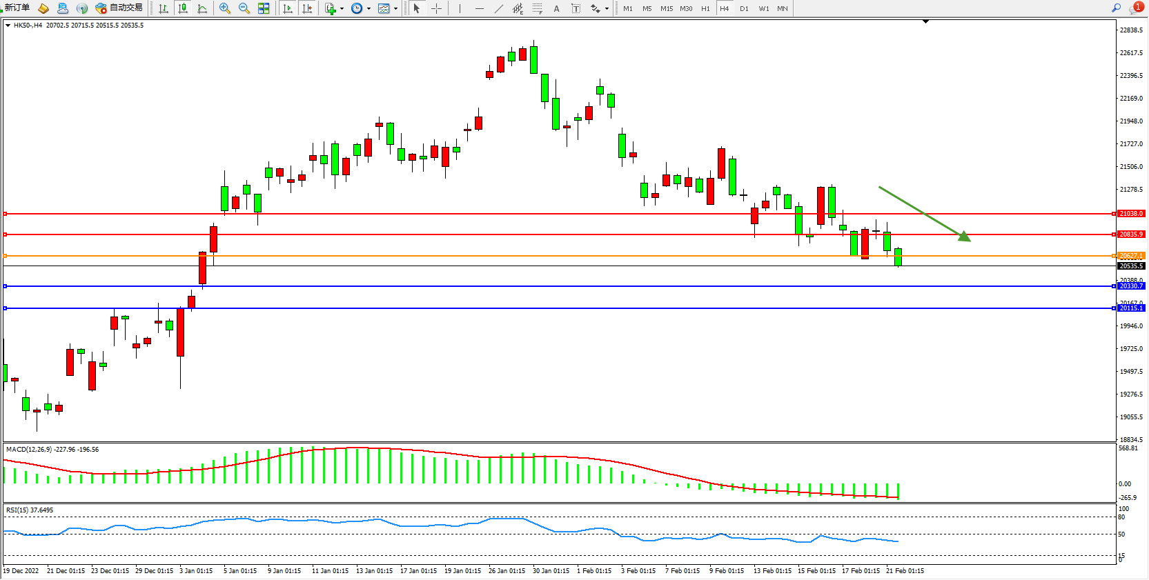 恒指HK50 4小时图
