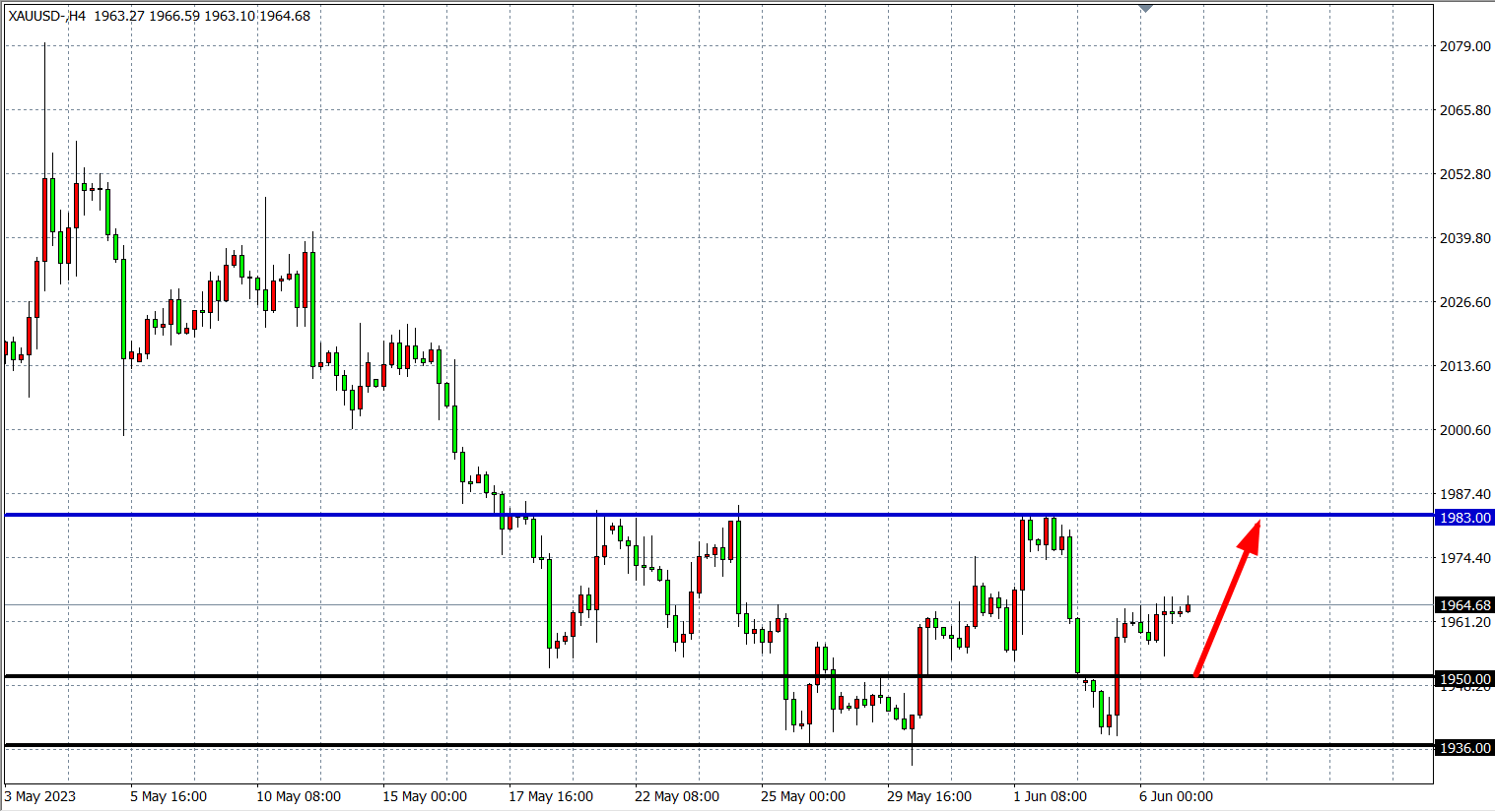 现货黄金XAUUSD 四小时图