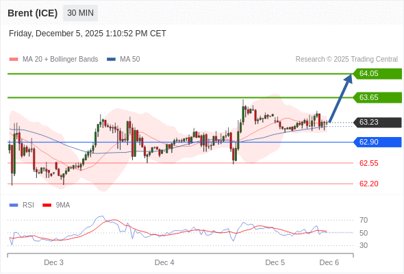 在 62.90 之上,看涨,目标价位为 63.65 ,然后为 64.05 。